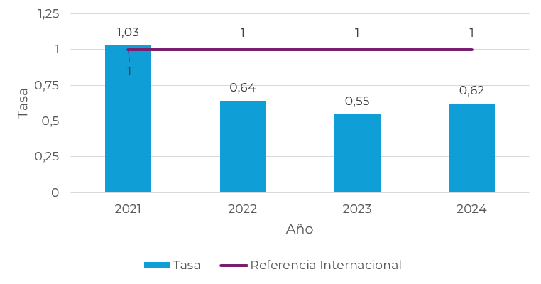 2021 2022 2023 2024 Tasa 1,03 0,64 0,55 0,62 Referencia internacional* 1 1 1 1