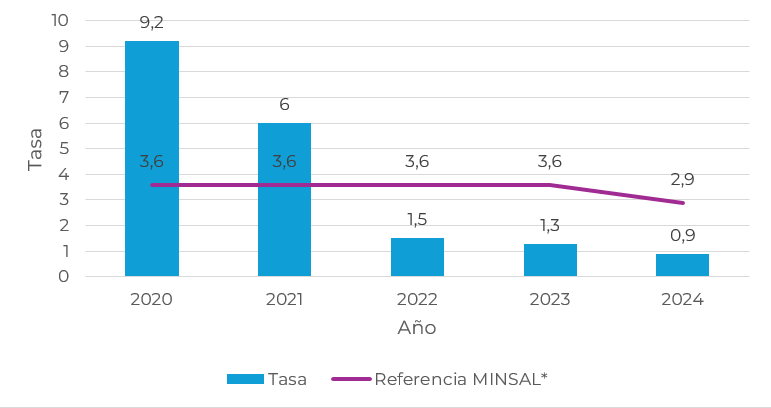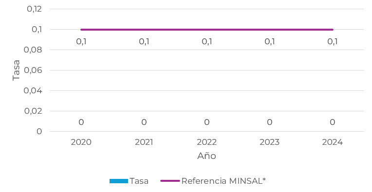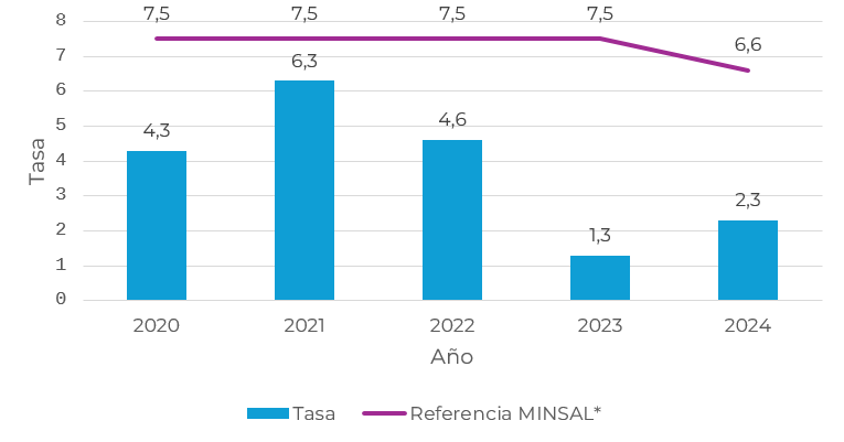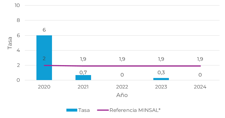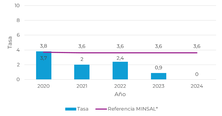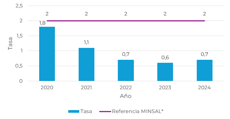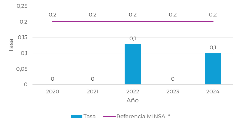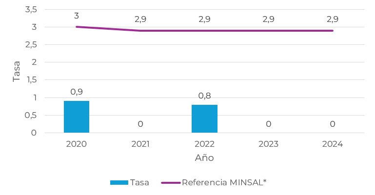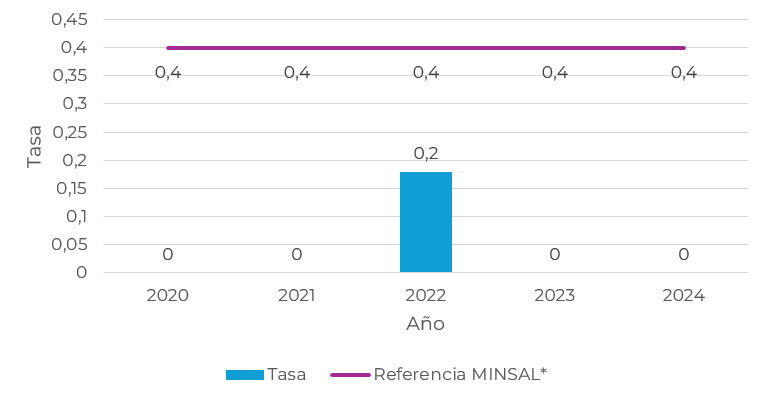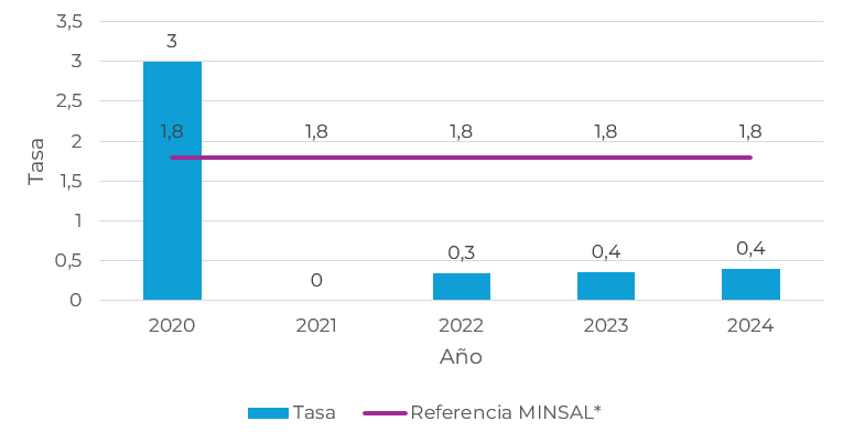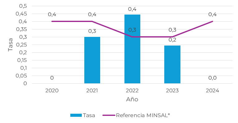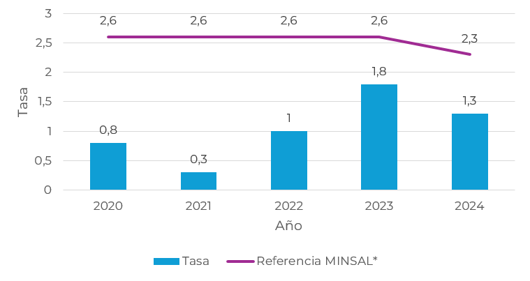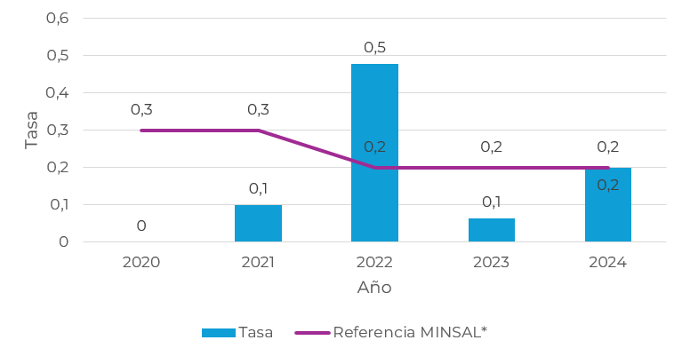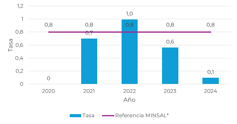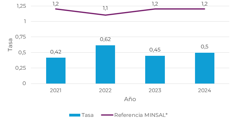 2021 2022 2023 2024 Tasa 0,42 0,62 0,45 0,5 Referencia MINSAL* 1,2 1,1 1,2 1,2